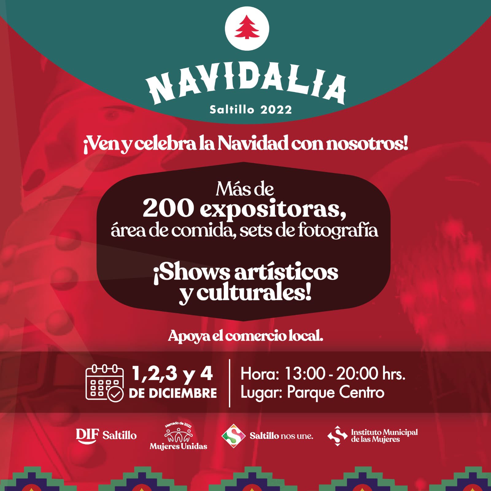 Este jueves 1 de diciembre dará inicio Navidalia 2022 donde mujeres emprendedoras ofertarán sus productos y servicios y donde además se contará con diferentes shows artísticos y culturales para toda la familia.