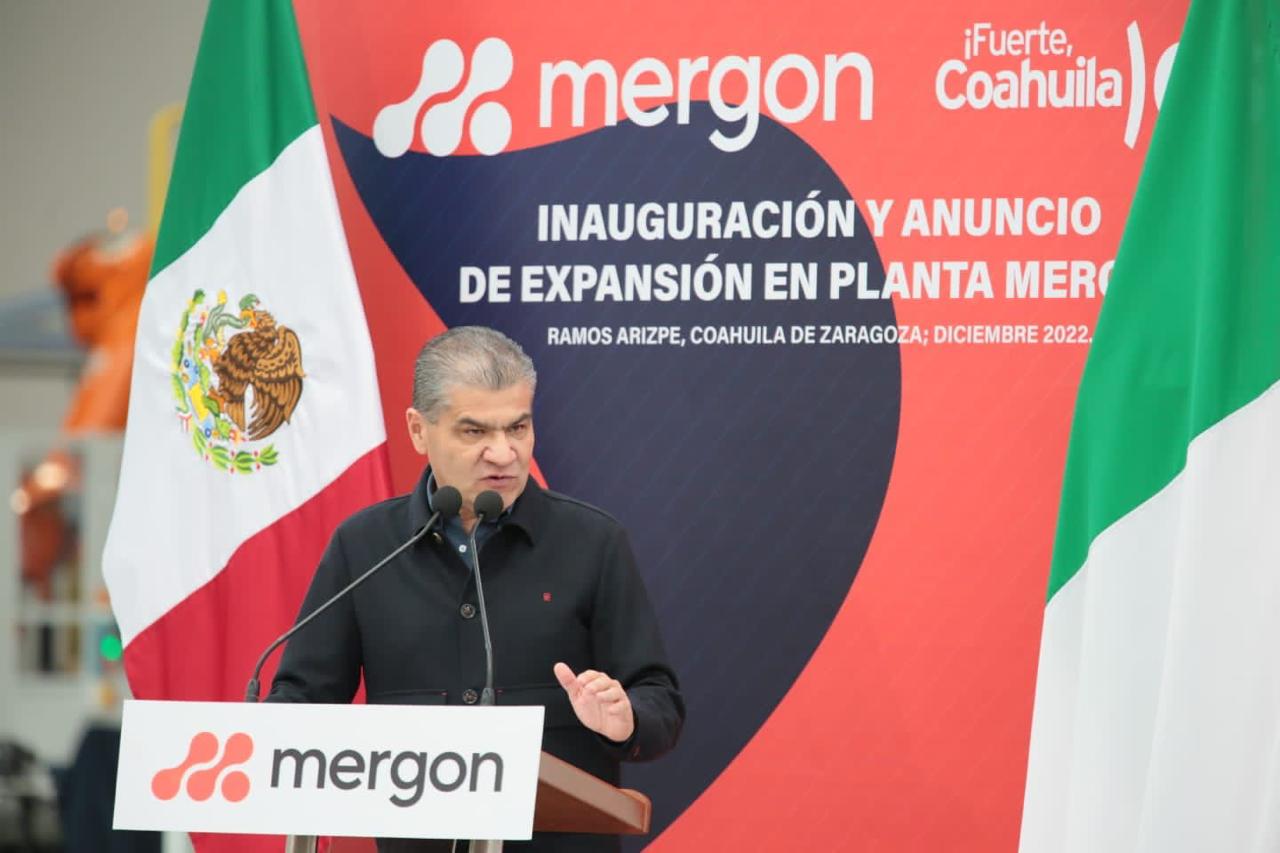 “Espero que Mergon, si piensa extender sus operaciones, lo haga en Coahuila, por eso vamos a estar siempre trabajando para mejorar nuestra infraestructura, las condiciones, la paz laboral que tiene la entidad, lo que es parte del Estado de Derecho; es decir, de la confianza que debe tener cualquier inversionista para apostarle a un estado”, dijo.