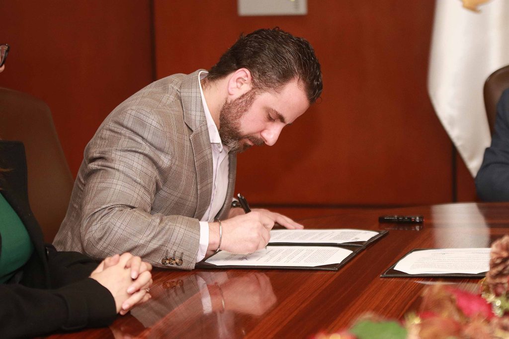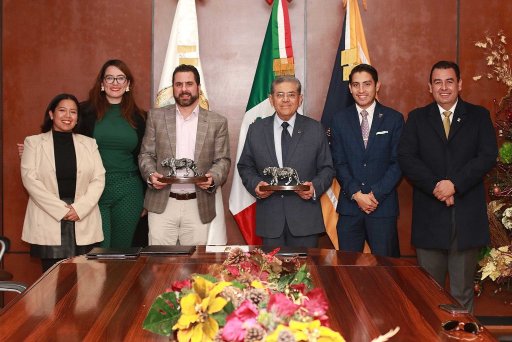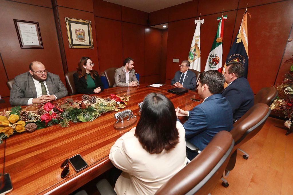 En reunión encabezada por el rector de la UA de C, Salvador Hernández Vélez, signó el convenio con el director de la Casa de la Cultura Jurídica, Roberto Giacomán Gidi, acompañados por la encargada de Vinculación, Valeria Ortíz y el director de la Facultad de Jurisprudencia, Alfonso Yáñez Arreola.