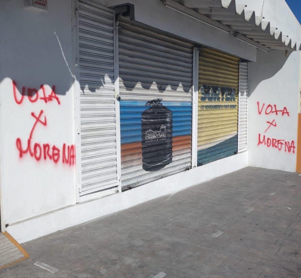 Además, se registraron actos vandálicos de grafitis con mensajes como «Vota Morena», en algunos establecimientos del Centro Histórico de la ciudad. (EL HERALDO)
