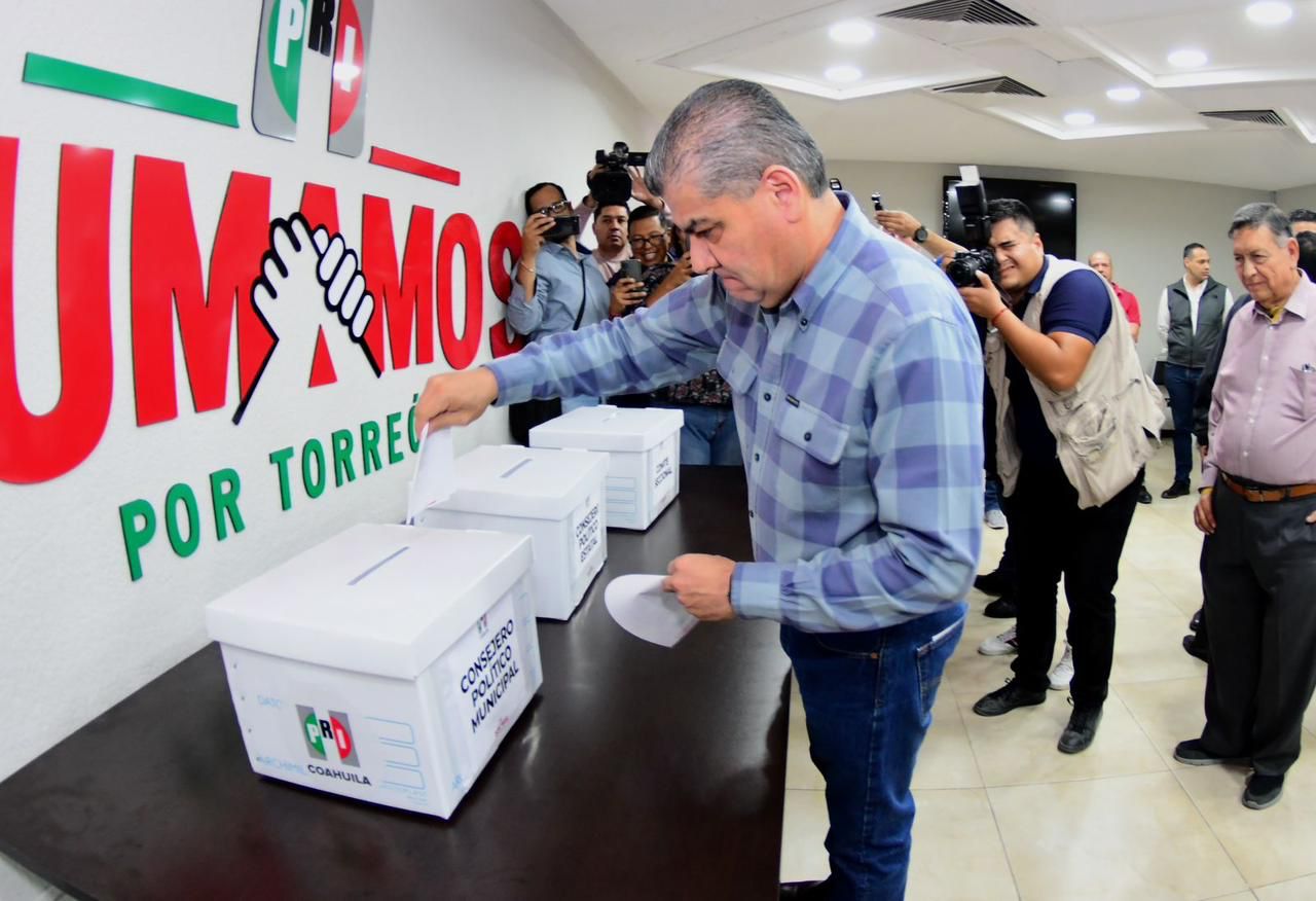 Desde temprano hubo largas filas en los 38 municipios, acudieron a votar en Torreón Miguel Ángel Riquelme Solís, acompañado del presidente del Partido en el estado, Rodrigo Fuentes Ávila, de la presidenta del PRI en Torreón, Verónica Martínez y del consejero político estatal, Eduardo Olmos Castro.