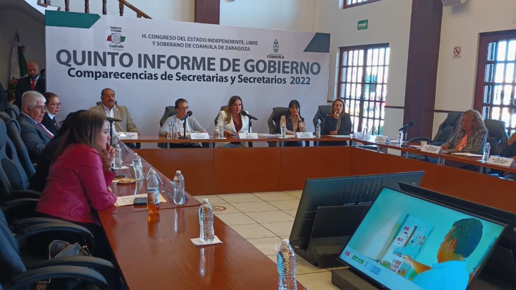 Durante su comparecencia ante diputados de la LXII Legislatura en el marco de la glosa del Quinto Informe del gobernador Miguel Ángel Riquelme Solís, la titular de la Secretaría del Trabajo y Previsión Social de Coahuila (SETRA), Nazira Zogbi Castro, destacó el esfuerzo de los sindicatos, empresarios y autoridades laborales para mantener a Coahuila en los primeros lugares en materia laboral, e indicó que lo hecho en la entidad durante estos cinco años en ese rubro, ofrece la certeza de que se transita en la ruta correcta.
