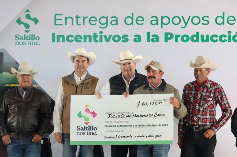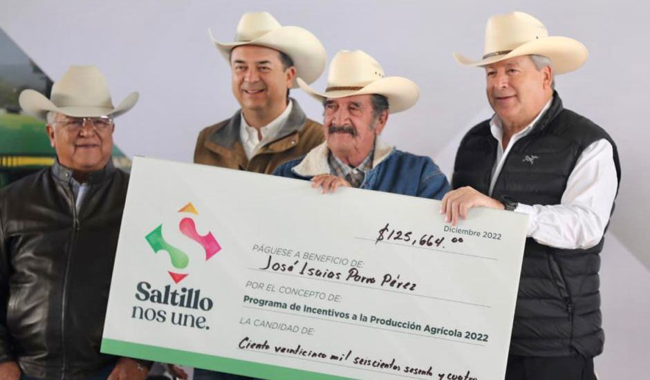 En el ejido Agua Nueva, el alcalde José María Fraustro Siller hizo entrega de apoyos económicos a productores del campo saltillense, como parte del Programa de Incentivos a la Producción Agrícola, en los que se invirtieron 6.7 millones de pesos.