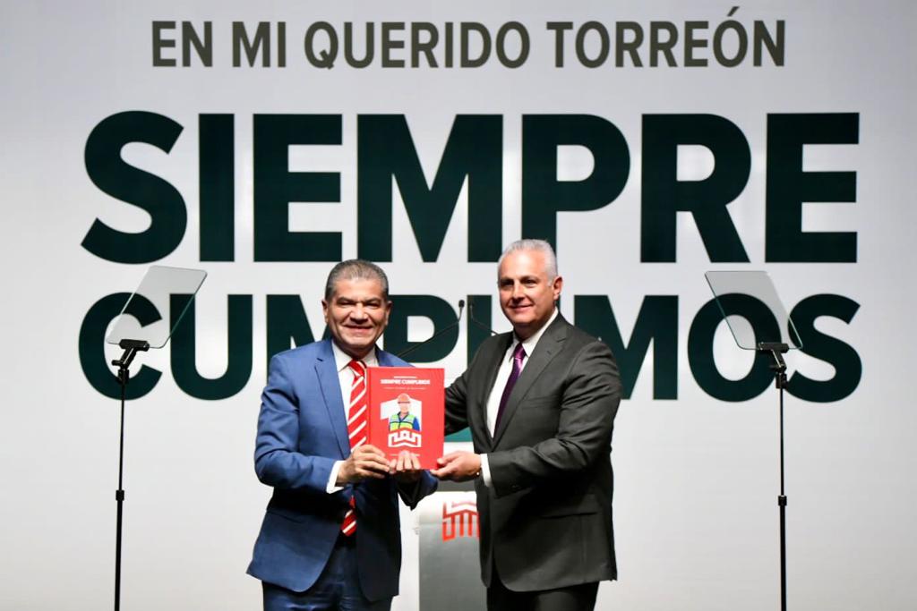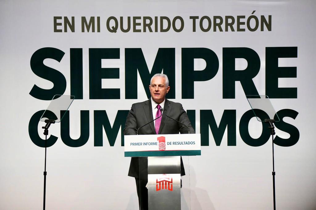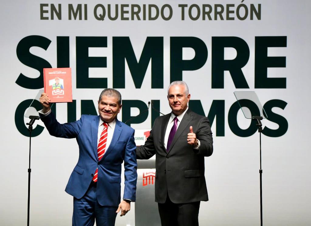 Este lunes en el Teatro Nazas, el Presidente Municipal entregó su primer informe de resultados al gobernador de Coahuila, Miguel Ángel Riquelme Solís, quien dijo que con el Alcalde se ha realizado un trabajo muy coordinado y ordenado, y lo felicitó por su labor al frente de la Administración.