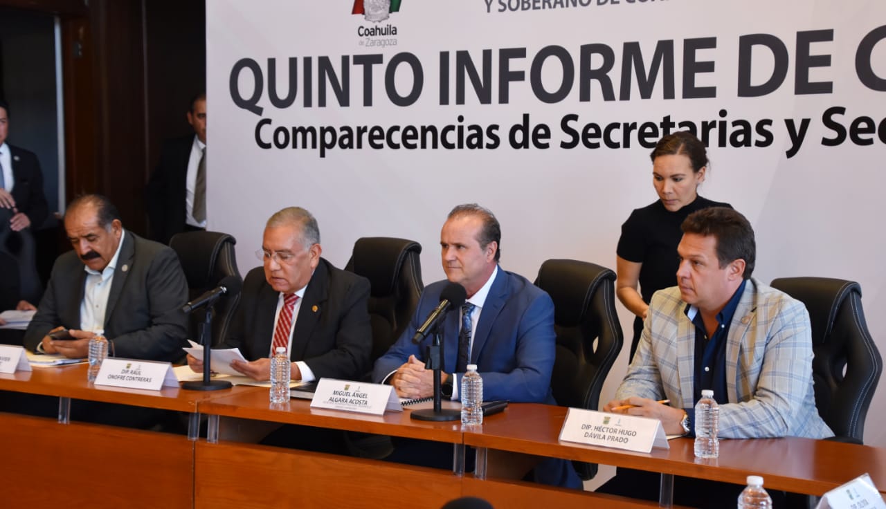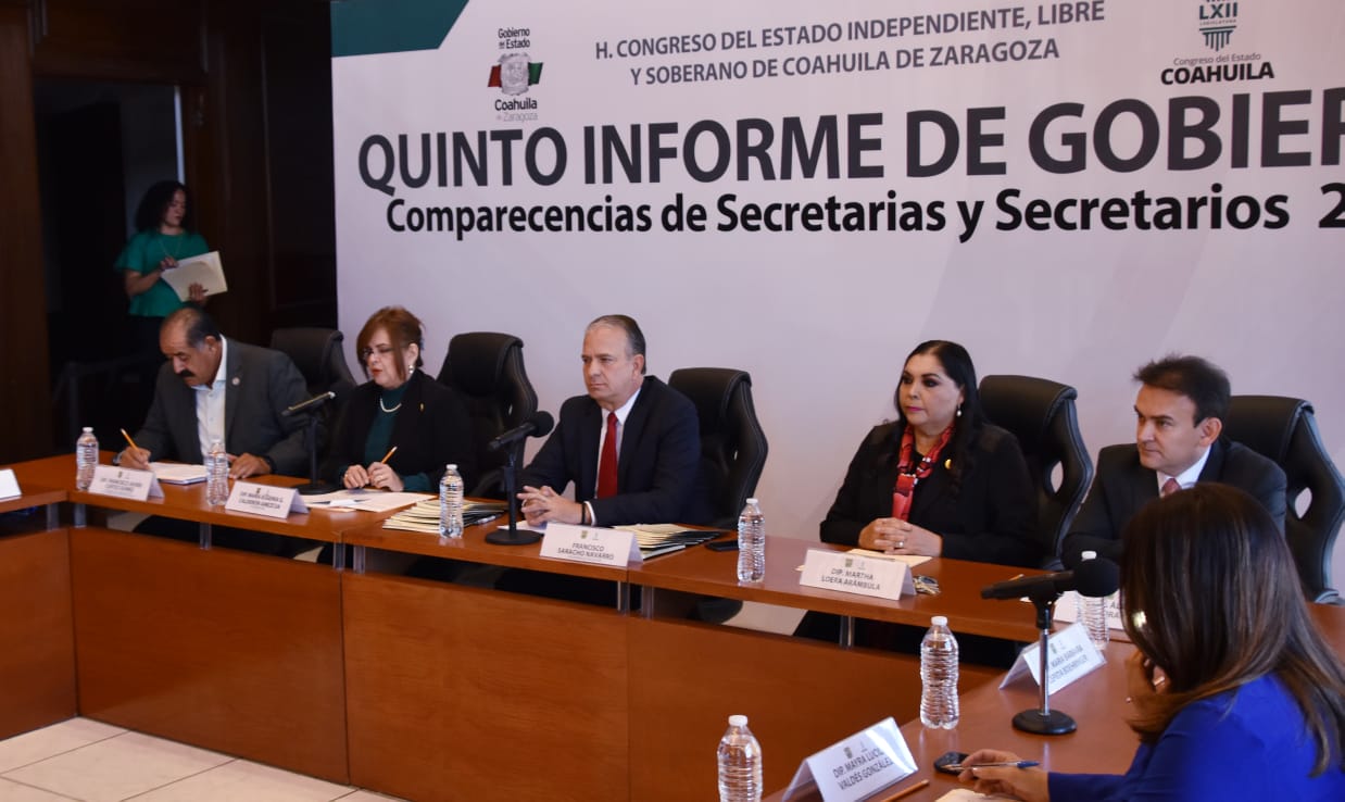 Cabe señalar que el análisis del Quinto Informe del Gobernador Miguel Riquelme Solís inició el jueves 1 de diciembre, con las comparecencias del Secretario de Gobierno, Fernando de las Fuentes Hernández; de la Secretaria de Seguridad Pública, Sonia Villarreal Pérez; del Secretario de Desarrollo Rural, José Luis Flores Méndez, y del Secretario de Economía, Claudio Bres Garza.