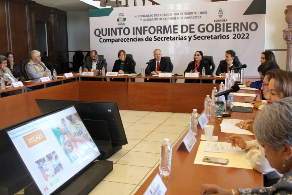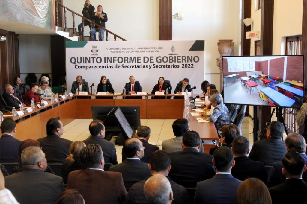 El Secretario de Educación en Coahuila, Francisco Saracho Navarro compareció este martes ante diputadas y diputados de las fracciones parlamentarias que integran las comisiones de Educación, Cultura, Familias, Desarrollo Humano y Actividades Cívicas; comisión de Deporte y Juventud, así como Ciencia y Tecnología de la Sexagésima Segunda Legislatura, con fundamento en lo dispuesto por la Ley, con relación al Quinto Informe de Gobierno del Titular del Ejecutivo.