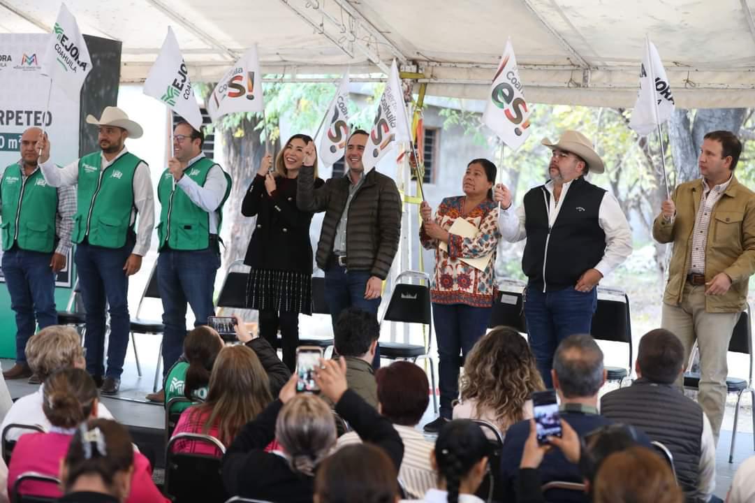 Múzquiz.- Como parte del programa Mejorando Ando y del trabajo en equipo entre el Gobierno Estatal y el municipal, el Secretario de Inclusión y Desarrollo Social, Manolo Jiménez Salinas y la alcaldesa Tania Flores Guerra, dieron arranque a las obras de recarpeteo en la colonia Morelos, una de las más afectadas por las pasadas inundaciones del mes de septiembre.