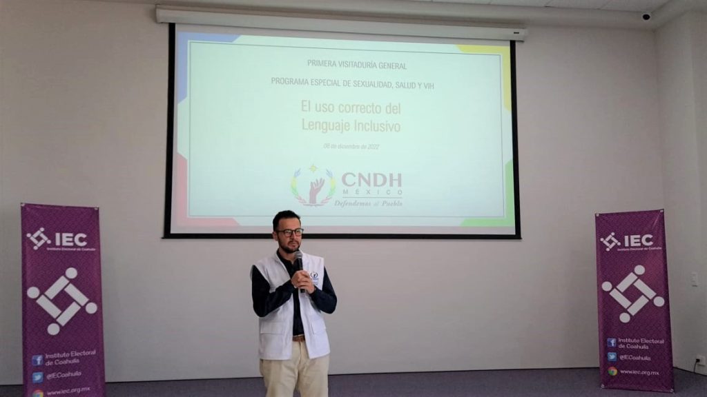 En primera instancia, durante el evento que estuvo a cargo de Carlos Alberto Hernández Guzmán, integrante de la Comisión Nacional de los Derechos Humanos (CNDH) y que se realizó este jueves en la sede del IEC en Saltillo, se detalló que una manera práctica para hacer valer la identidad y valor de los géneros masculino y femenino por igual es incluir el uso de “las y los”, “personas” y “ciudadanía” en expresiones cotidianas y contextos donde haya presencia tanto de hombres como mujeres.