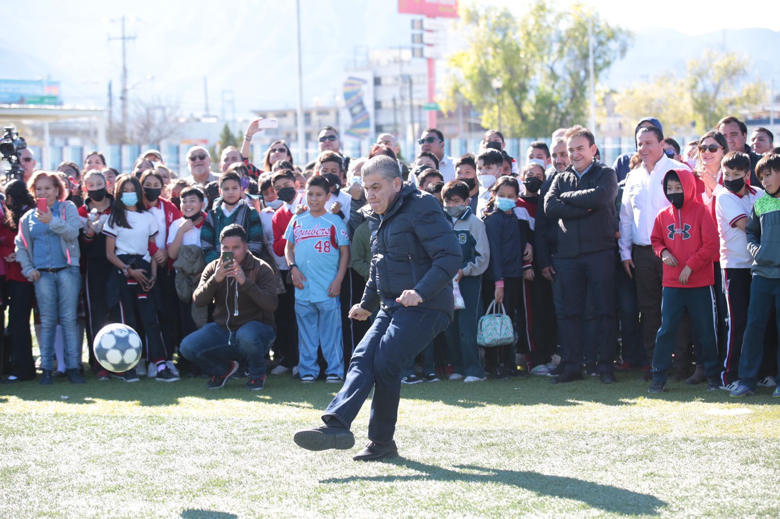 El Director de Desarrollo Social de Saltillo, Aníbal Soberón Rodríguez, explicó las obras realizadas para rehabilitar esta unidad deportiva, y ofrecer un espacio digno para las niñas, niños, adolescentes, mujeres y adultos, además de que hay 24 ligas deportivas que juegan en dichas instalaciones.