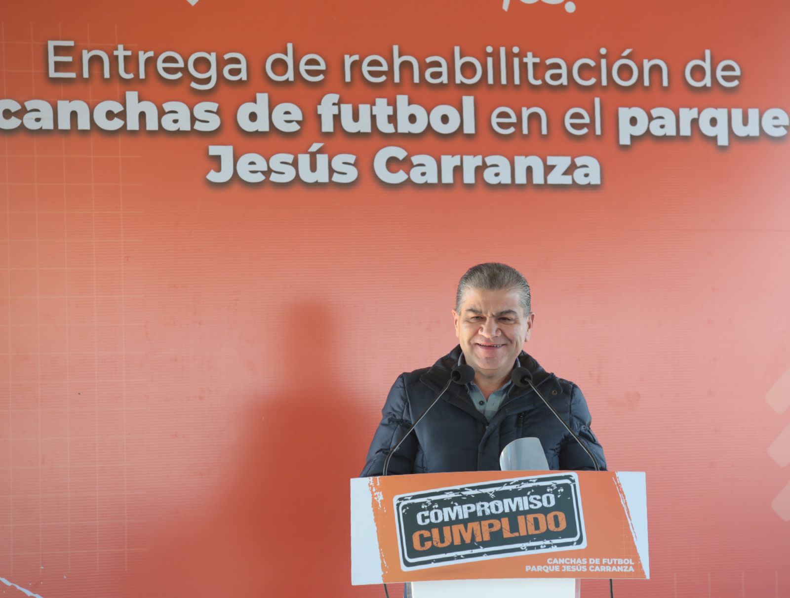 En beneficio de más de 14 mil habitantes de 11 colonias del sur de Saltillo, el gobernador Miguel Ángel Riquelme Solís, en compañía del alcalde José María Fraustro Siller, entregaron la rehabilitación de canchas deportivas del Parque «Jesús Carranza”, con una inversión de 5.6 millones de pesos.
