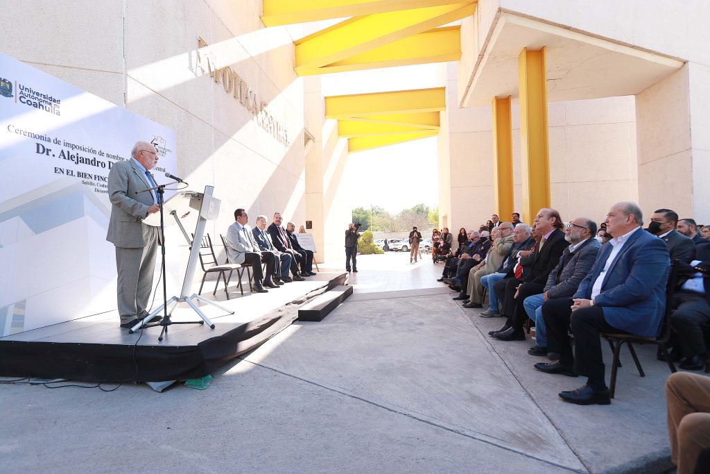 Para reconocer su trayectoria y compromiso académico, se rindió un homenaje al ex rector de la Universidad Autónoma de Coahuila, Dr. Alejandro Dávila Flores, en una ceremonia de imposición con su nombre a la Infoteca Central ubicada en la Unidad Camporredondo.