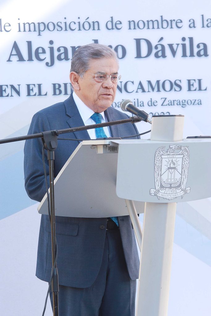 En la ceremonia el secretario general, Miguel Ángel Rodríguez Calderón dio lectura al Acta de la Comisión General Permanente de Honor y Justicia del Honorable Consejo Universitario de la UA de C, la cual tuvo sesión el 30 de noviembre del año en curso, para atender la solicitud del Consejo Directivo de la Facultad de Economía y de la Academia de Investigadores del Centro de Investigaciones Socioeconómicas para imponer el nombre de Dr. Alejandro Dávila Flores a la Infoteca Central en Unidad Camporredondo, lo cual fue aprobado, pues sus contribuciones académicas dentro y fuera de la Universidad son destacadas.