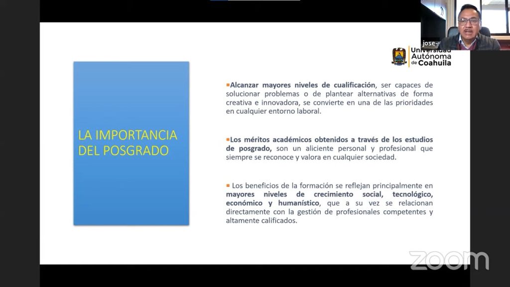 Agregó que los programas de posgrado son parte importante que permiten continuar el camino del conocimiento, así como desarrollar competencias y habilidades específicas que faciliten el planteamiento de soluciones efectivas en el ámbito social, productivo o gubernamental.