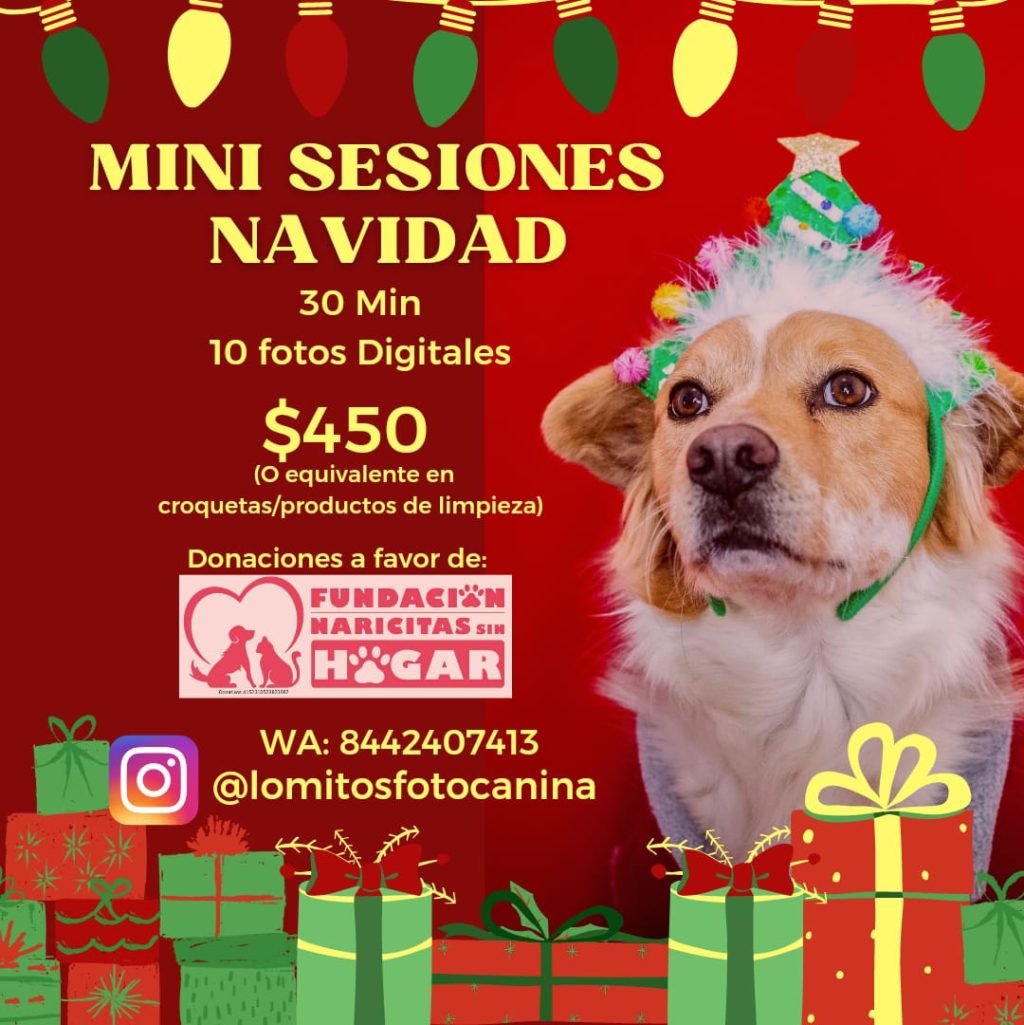 “Yahir es un excelente fotógrafo que trata especialmente con perritos y familias, tiene un set precioso de Navidad y nos está apoyando en esta ocasión para seguir ayudando a los perros y gatos que tenemos en los refugios y a algunos que todavía están en situación de calle», compartió este viernes con El Heraldo de Saltillo, Ana Belén García Cepeda, directora de Naricitas sin Hogar.