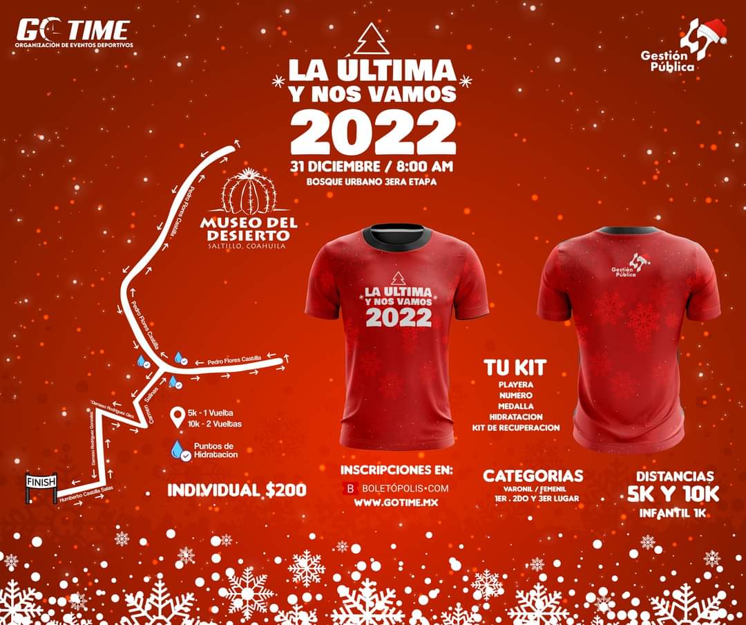 La presentación de esta carrera estuvo a cargo de Óscar Cortés, director general de Go Time, quien señaló que desde que se anunció vía redes sociales la realización del evento atlético, se ha tenido una estupenda respuesta de los corredores saltillenses, quienes desean concluir este año con la mejor vibra y practicando su actividad favorita.