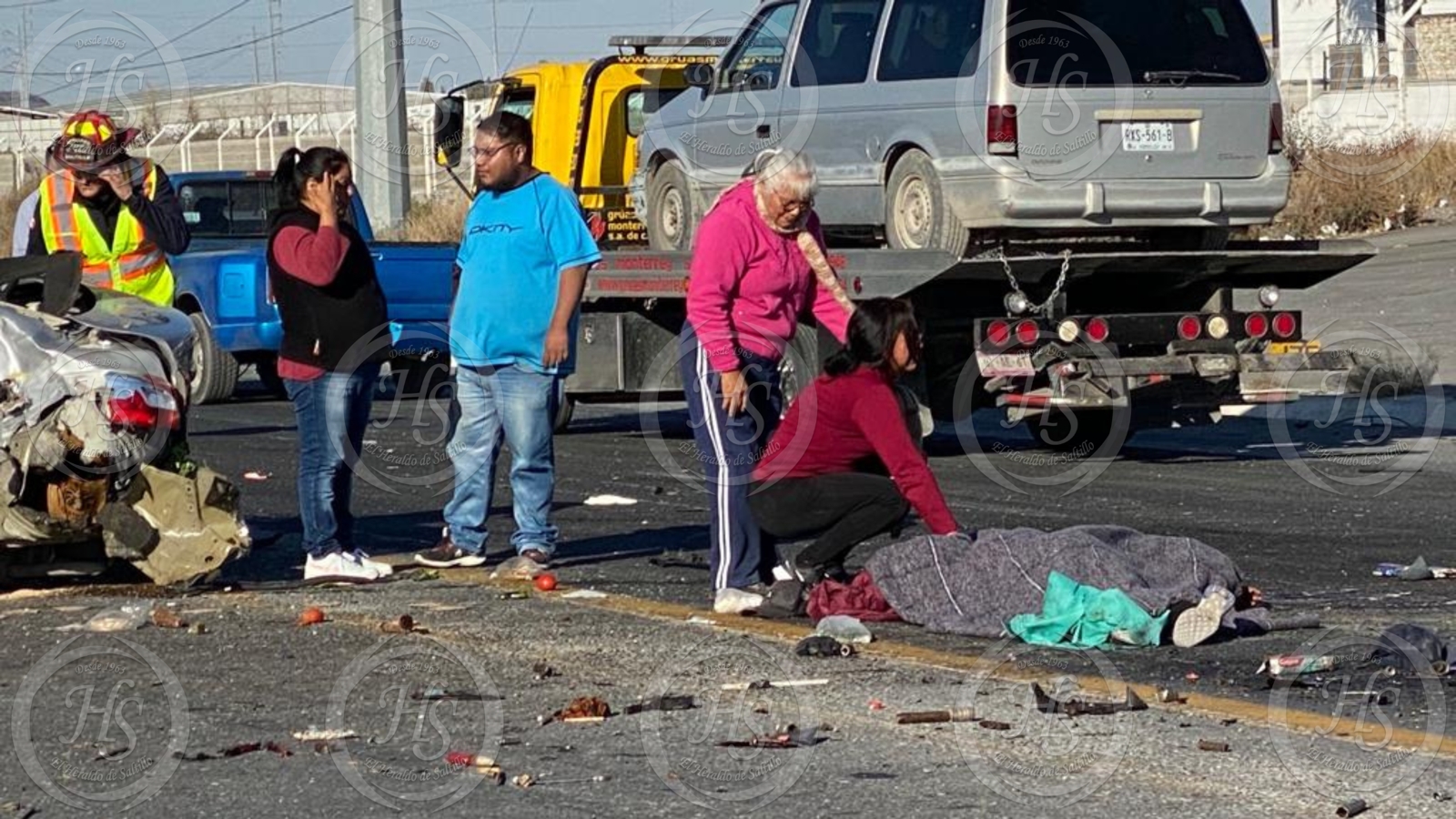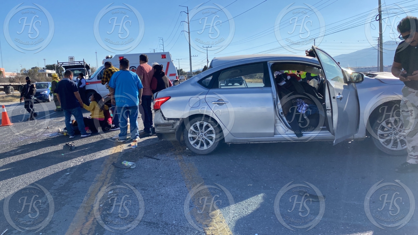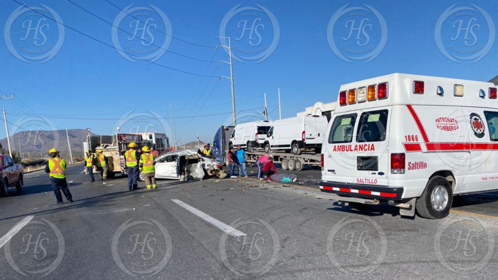 El automóvil dio varios giros y recibió un segundo impacto, por parte del operador de un transporte de personal, que se dirigía hacia Saltillo.