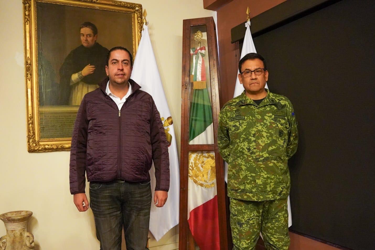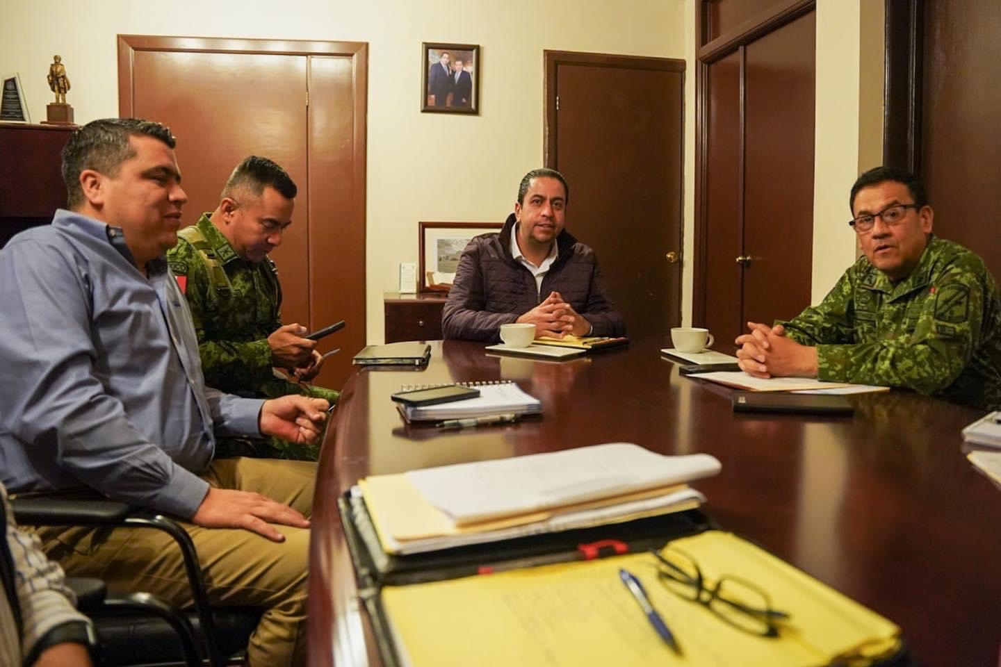 Lo anterior, luego de sostener una reunión este miércoles en la Presidencia Municipal con el General Diplomado de Estado Mayor, Gabriel Martínez García, comandante de la Sexta Zona Militar en compañía de autoridades municipales y militares.