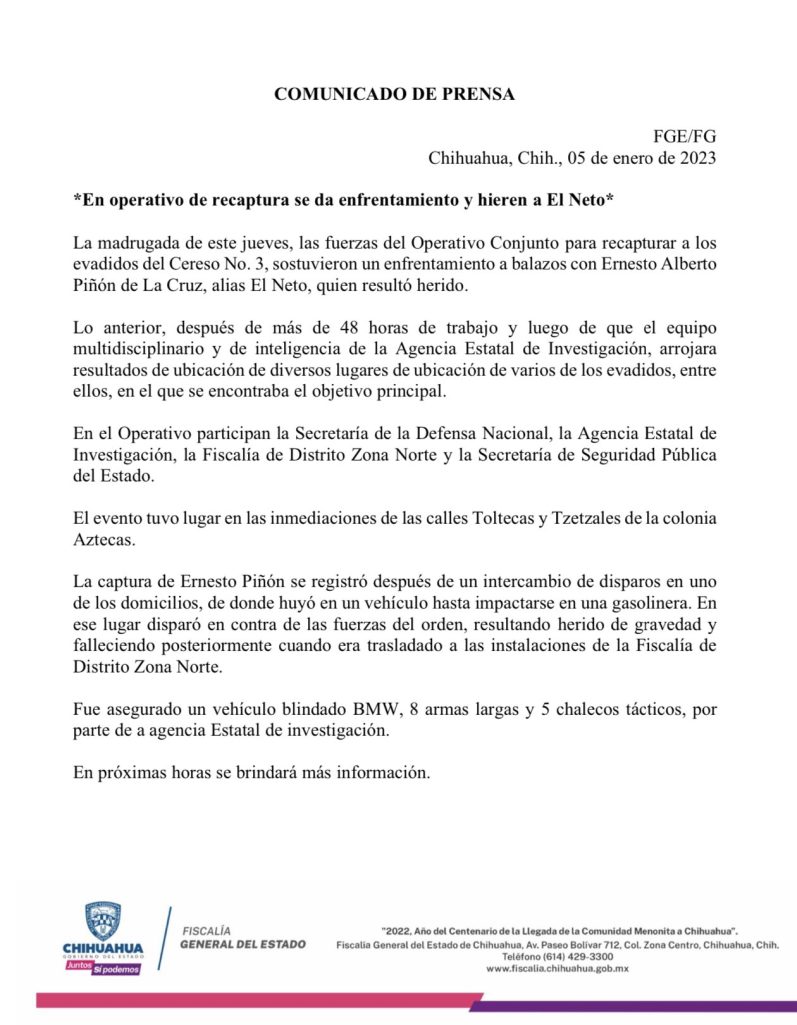 De acuerdo con la versión oficial, la captura de “El Neto” se registró después de un intercambio de disparos en uno de los domicilios, de donde huyó en un vehículo hasta impactarse en una gasolinería.