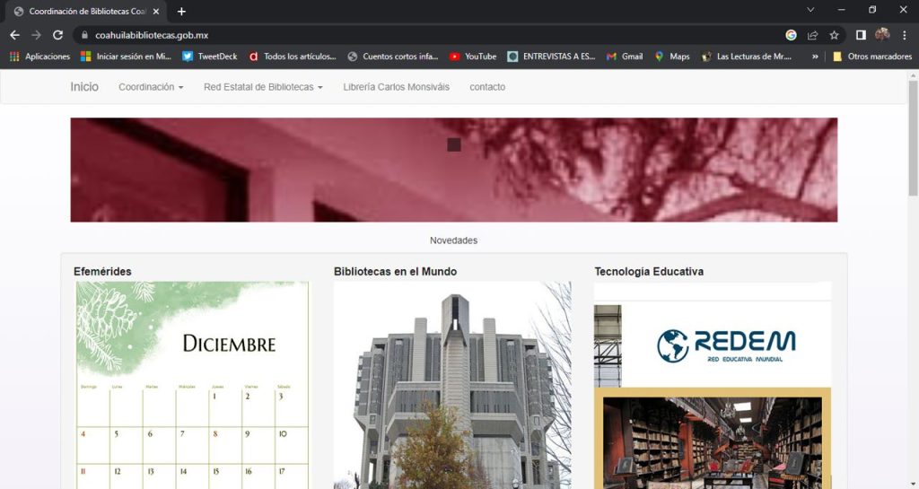 Al ingresar a la página, el usuario podrá ver las efemérides del mes, bibliotecas del mundo, tecnología educativa, acceder a biblioteca digital y mucho más.