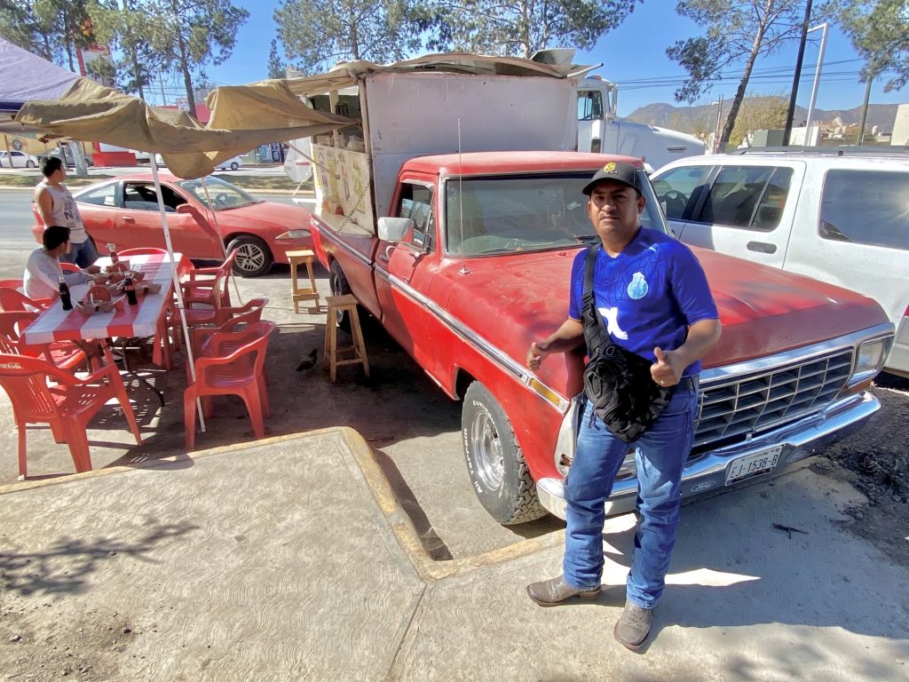 “Mi padre comenzó este negocio, desafortunadamente hace algunos años él falleció y yo, su hijo, me quede con el negocio. Nacimos y crecimos en Ramos, en la colonia San Antonio. La camioneta se volvió famosa desde el año 1984, siendo una modelo Ford 1978 cuando la compró mi papá y la modificó para que se volviera la taquería rodante que todos conocen”.