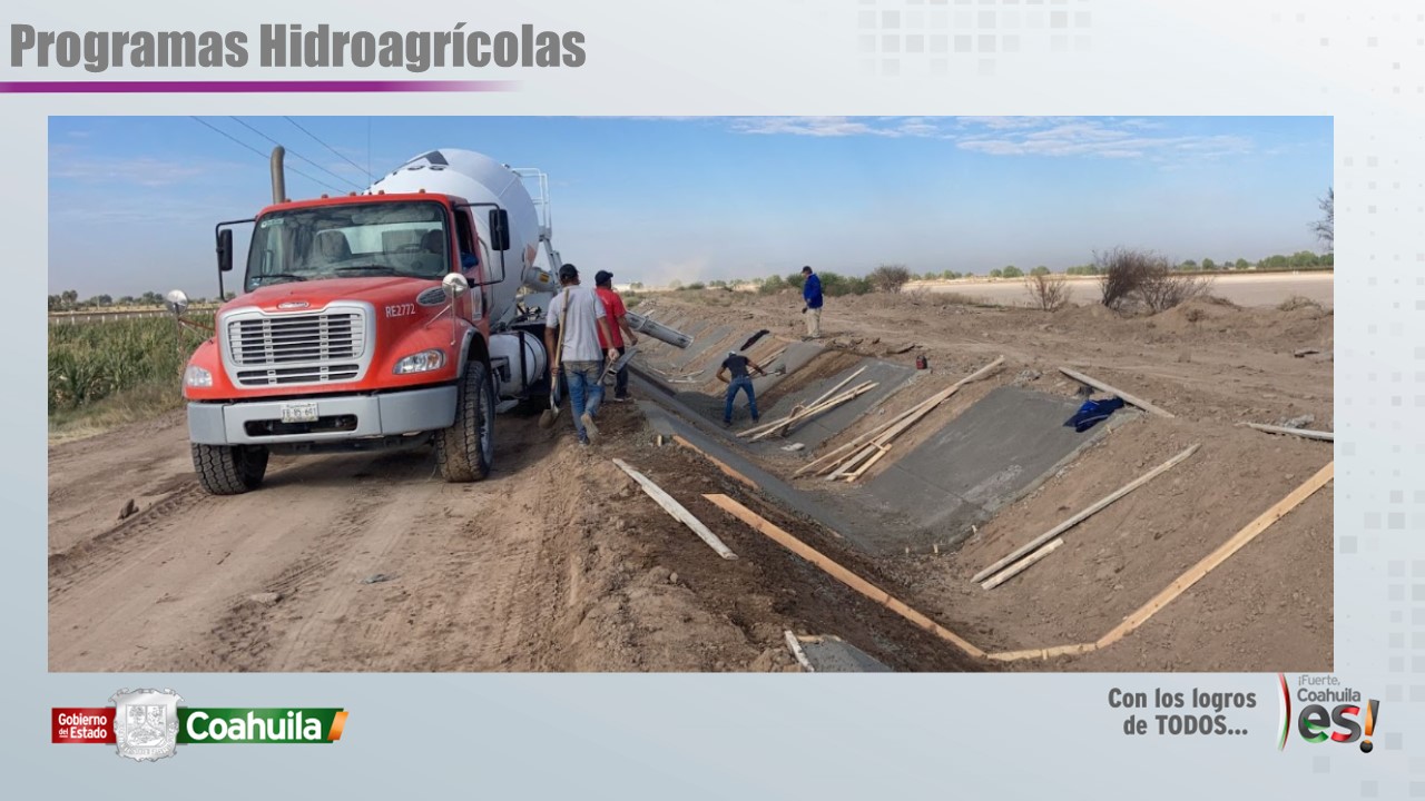 Por ejemplo, agregó, en el Distrito de Riego No. 17 de la Región Laguna, uno de los más importantes de México, se llevaron a cabo 6 acciones de mejoramiento de canales, en beneficio de alrededor de 2,000 habitantes, para una cobertura superficial de 15,000 hectáreas.