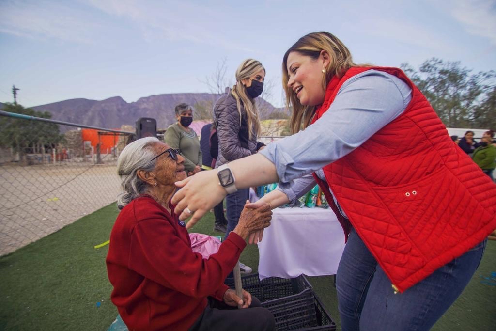 La presidenta honoraria del sistema DIF en Ramos Arizpe, Ana Lucía Cavazos Cuéllar, encabezó la primera brigada de servicios del año en curso en la congregación de San José de los Nuncio, en donde entregó capas polares y diversos artículos donados por empresas de la localidad.