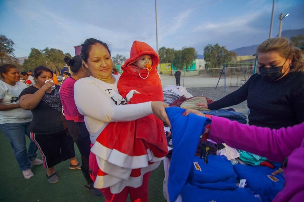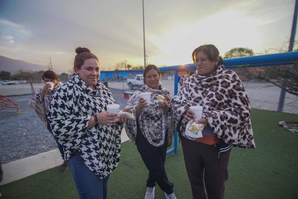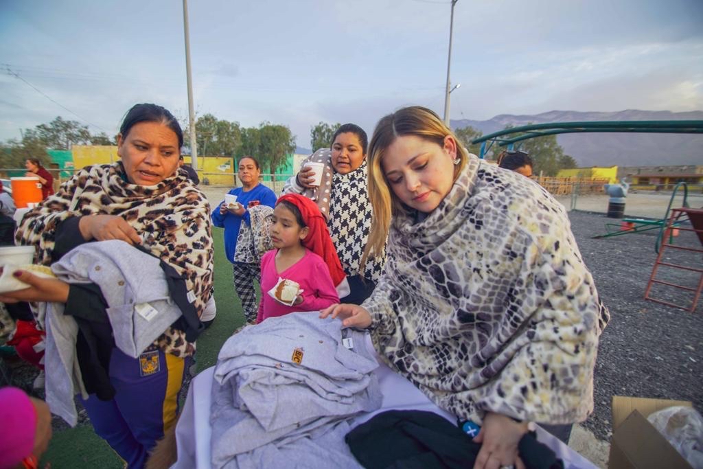Cavazos Cuéllar entregó alrededor de 100 capas polares fabricadas en los talleres del DIF Municipal, además de distribuir una cantidad similar de playeras y sudaderas así como artículos de uso personal como rastrillos, donados por la planta BIC Ramos Arizpe.