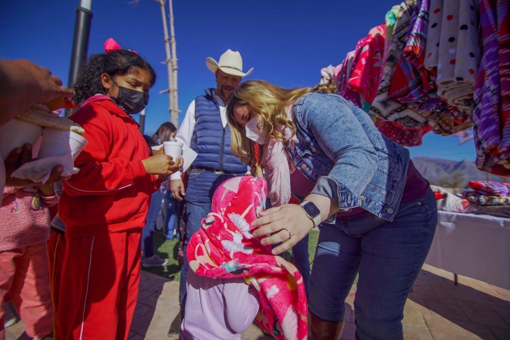 Los asistentes pudieron disfrutar también de un rico chocolate caliente, pan dulce, la entrega de capas para protegerse del frío en temporada de temperaturas bajas, ropa y artículos personales.