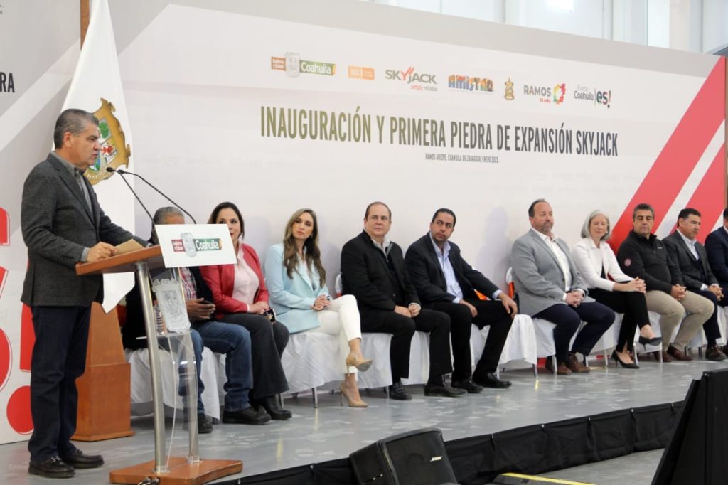 Ramos Arizpe, Coahuila.- “La seguridad es nuestra fortaleza”, mencionó el gobernador Miguel Ángel Riquelme Solís durante la inauguración y primera piedra de la empresa canadiense SkyJack, que invierte 80 millones de dólares y generará 600 empleos.