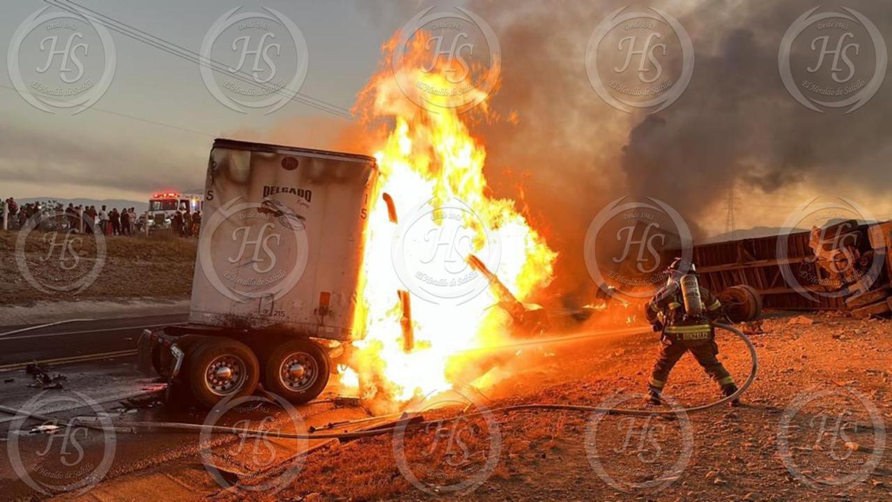 Un choque frontal entre dos transportes de carga dejó como resultado a una persona lesionada y ambas unidades en cenizas.