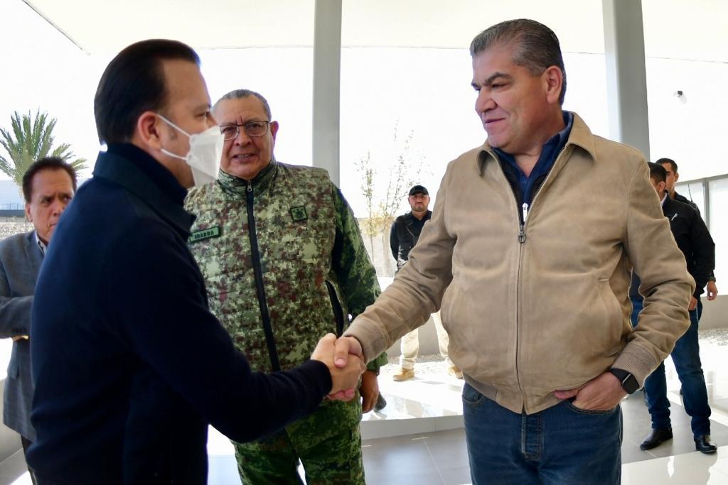 Torreón.- El Gobernador de Coahuila, Miguel Ángel Riquelme Solís, se reunió con su homólogo de Durango, Esteban Villegas Villarreal, y Fuerzas Militares, para seguir coordinando esfuerzos en torno al tema de seguridad en la Comarca Lagunera, con énfasis en la revisión continua de los Centros Penitenciarios y el combate al narcomenudeo.