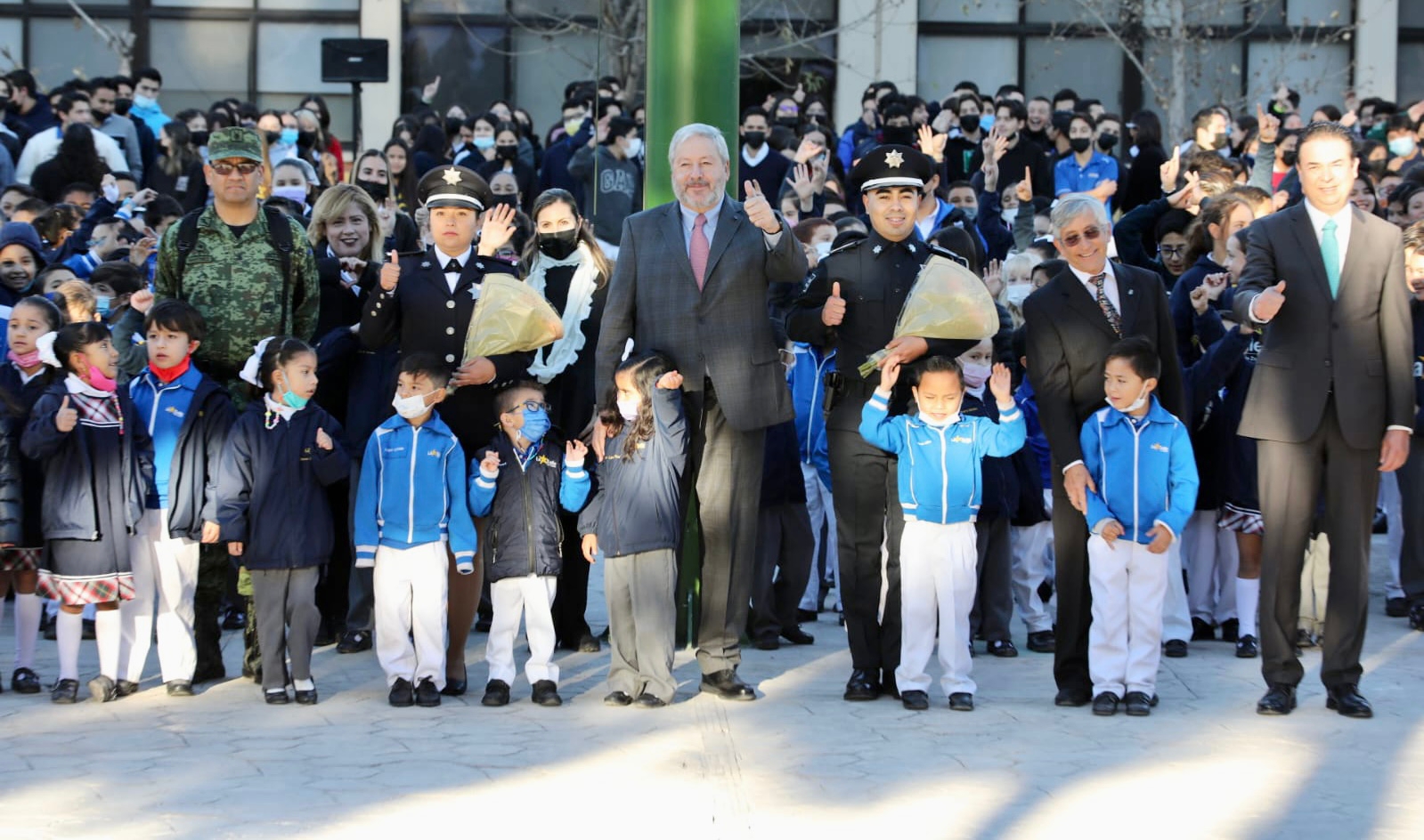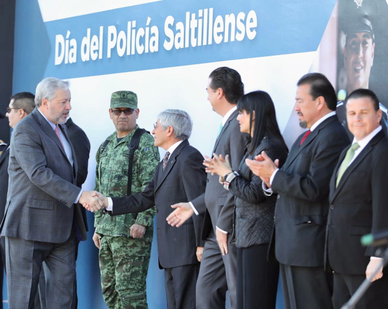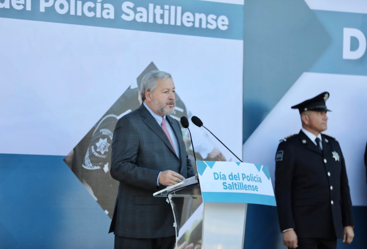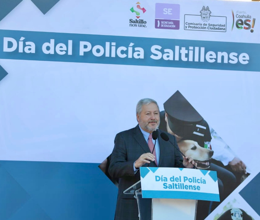 Tras agradecer al Colegio Ignacio Zaragoza su participación, el alcalde comentó que este lunes fue la primera edición del Día del Policía Saltillense, instituido en diciembre por el Cabildo para reconocer la labor de quienes arriesgan su vida por la seguridad de la ciudadanía.