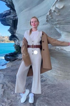 Un Jumpsuit o mono de canalé, maxicinturón en la cintura y abrigo camel estilo parisino. ¿El toque de distinción que en lugar de desplazar hace que todo sea muy original? Tenis de plataforma que permiten tener comodidad sin perder el estilo.