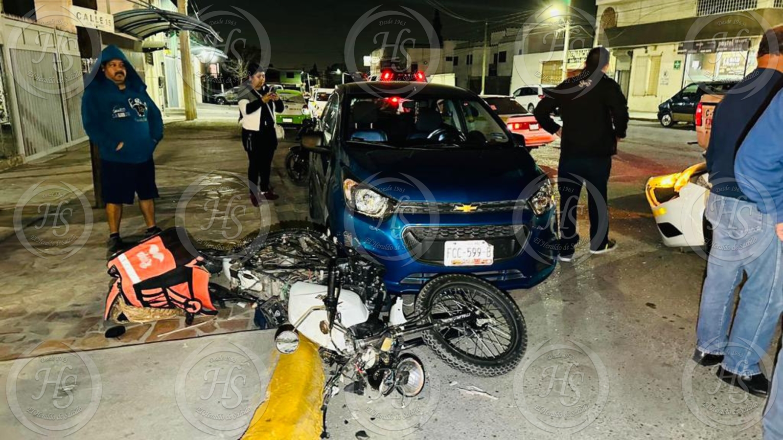 El chofer de un taxi intentó ingresar a la colonia Lourdes sin precaución alguna y le quitó el derecho de paso a un motociclista, que terminó golpeando su cuerpo en contra del pavimento.