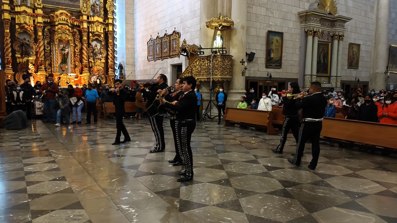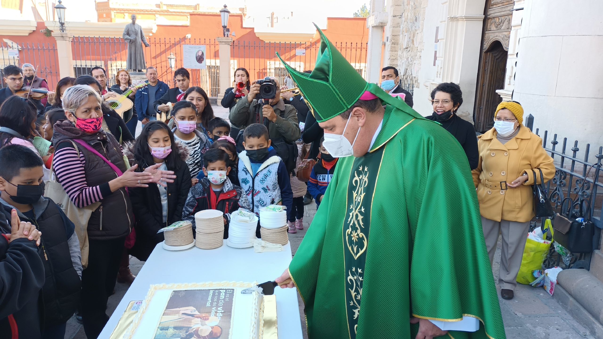 Al término de la misa para niños que encabezó junto con otros sacerdotes de la diócesis en la Catedral de Santiago, el Obispo fue sorprendido con las tradicionales mañanitas, que, acompañados de mariachis, entonaron los asistentes a la celebración, quienes tampoco escatimaron en porras y aplausos para el jerarca católico.