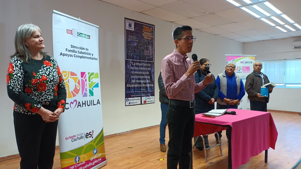 Las actividades de esta semana informativa, que este año llevará como lema: “La importancia de los medios de comunicación en la transmisión del mensaje de Alcohólicos Anónimos”, se pusieron en marcha en un evento que tuvo como sede las instalaciones del DIF Coahuila, donde se dieron presencia alumnos de educación básica, personal operativo de la Secretaría de Salud, e integrantes del Área Coahuila Oriente de AA.