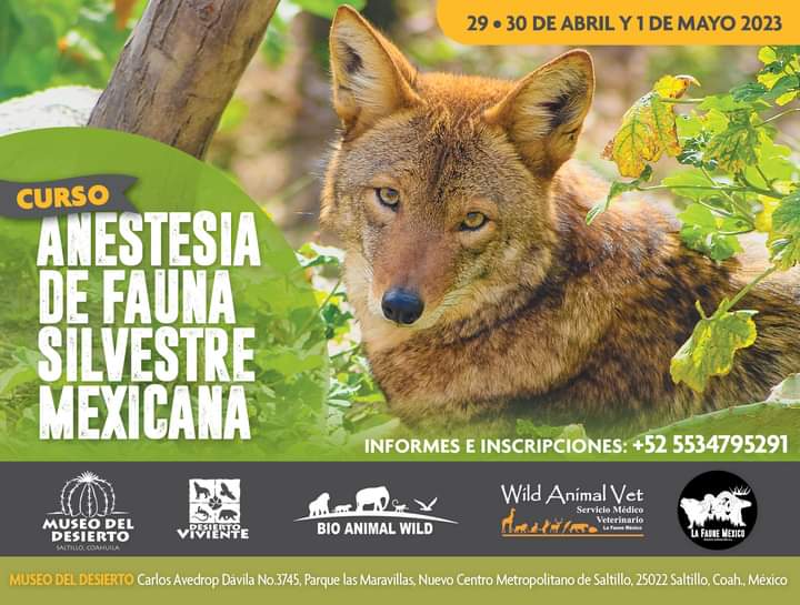 El Museo del Desierto (MUDE) informó que los días 29 y 30 de abril y 1 de mayo próximos, tendrá lugar en instalaciones de ese recinto museográfico el curso denominado “Anestesia de fauna silvestre mexicana”, dirigido a personal encargado del manejo de fauna silvestre perteneciente a dependencias públicas o gubernamentales, y al personal de zoológicos y otros espacios encargados del resguardo y protección de estos ejemplares.