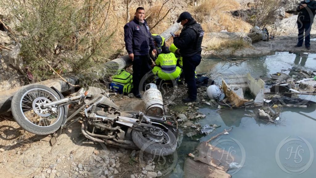 Elementos de Policía Saltillo apoyaron con el rescate del motociclista, y personal de Bomberos eliminaron cualquier riesgo, ya que el sexagenario llevaba en su unidad un tanque de gas. (EL HERALDO)