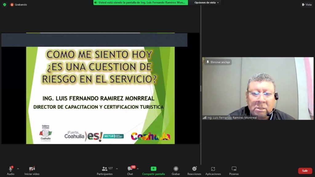 Por lo que se llevó a cabo la videoconferencia en el tema “Cómo me siento hoy, ¿es una cuestión de riesgo en el servicio?”, con el objetivo de proporcionar a los prestadores de servicios herramientas del manejo de emociones y sentimientos, como una cuestión de prevención de riesgos en los servicios, mencionó Guajardo Berlanga.
