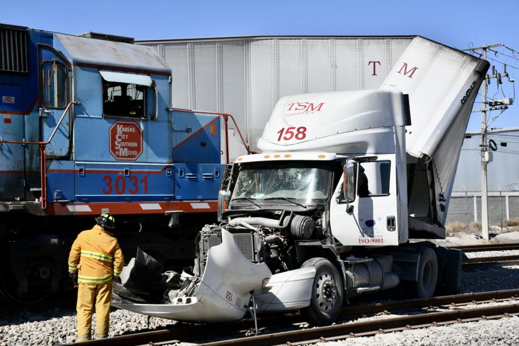 El conductor de un vehículo de carga intentó ganarle el paso al tren en el cruce de la vía férrea ubicada en la carretera Los Pinos en Ramos Arizpe, lo que provocó que el conductor de la unidad resultara con múltiples lesiones, además de la caja que transportará resultara dañada debido al impacto.