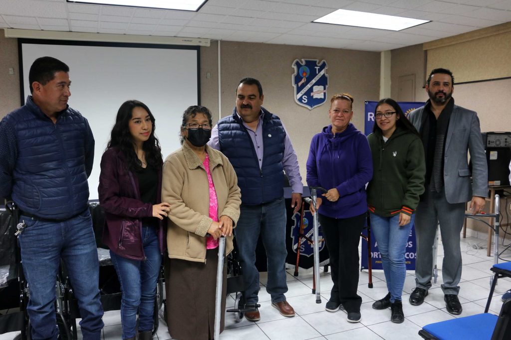 Durante la ceremonia se hizo entrega simbólica de algunos de los aparatos, que recibieron: Sotera Martínez un colchón neumático, José Cedillo y Juana Mata una andadera con asiento cada uno, José Flores una silla de ruedas y María de los Ángeles un bastón. (EL HERALDO)