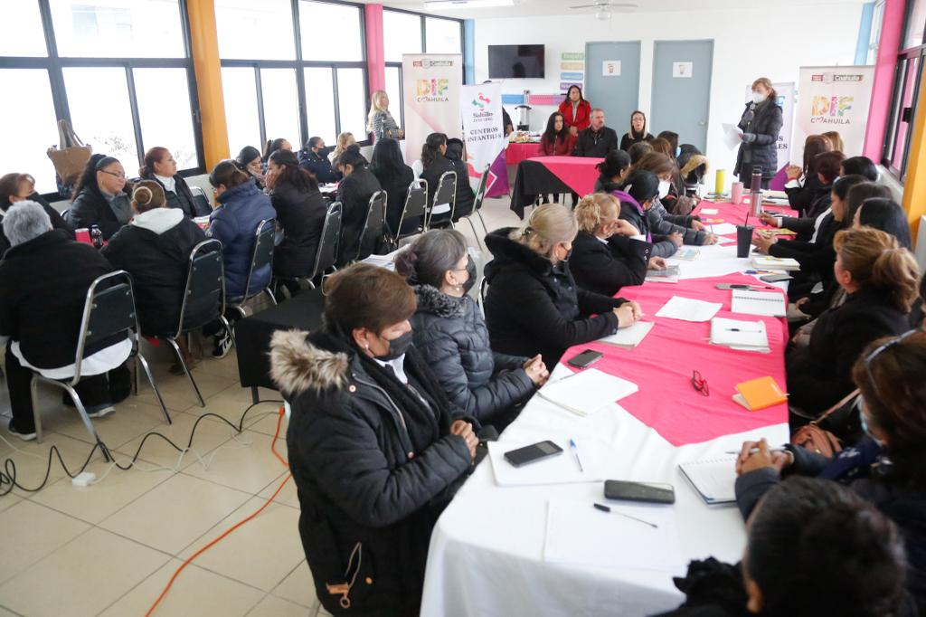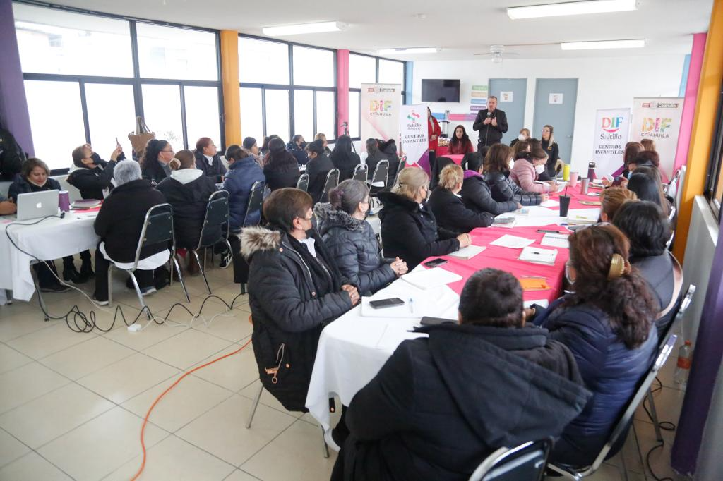 “En esta jornada capacitamos al personal docente, cocineras y cuidadoras de las estancias operadas por DIF Saltillo, con el fin de fortalecer la atención de las y los niños y contribuir en un mejor desarrollo psicosocial”, detalló.