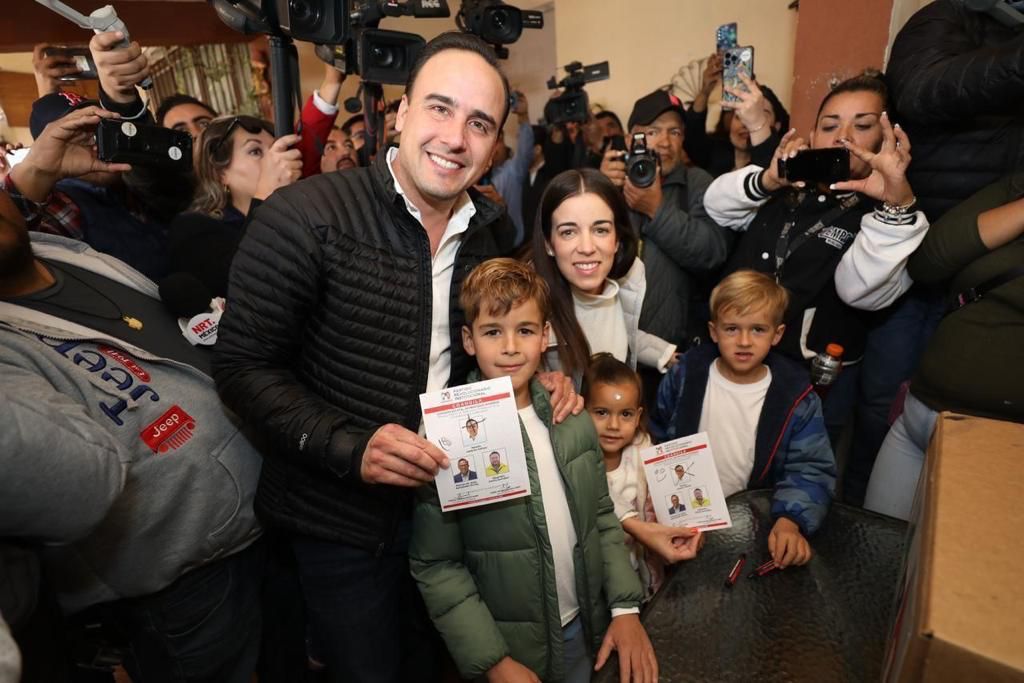 Al acudir a votar a la casilla del seccional 731 de la colonia Brisas, donde iniciara hace años su carrera política como presidente de la colonia, Manolo fue acompañado por su esposa Paola Rodríguez López y sus hijos; así como por un grupo nutrido de ciudadanos, el presidente estatal del PRI, Rodrigo Fuentes; el primer priísta de Saltillo, José María Fraustro; los legisladores federales Jericó Abramo y Jaime Bueno; diputados locales entre otros priístas distinguidos.