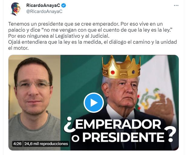 Anaya Cortés sostuvo que, a cuatro años de ser presidente, “López Obrador no entiende que no es un emperador”.