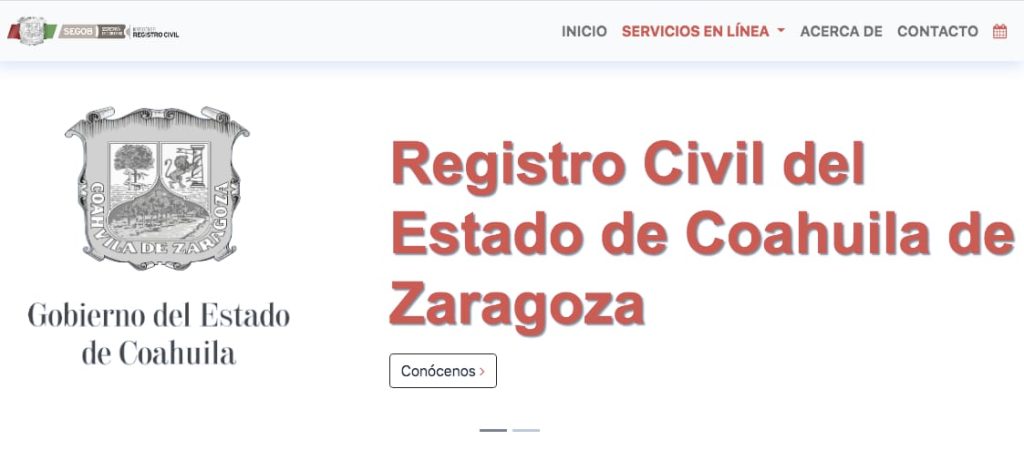 1.- Para obtener un acta de nacimiento, matrimonio, divorcio o defunción en línea, se ingresa la página www.registrocivilcoahuila.gob.mx
