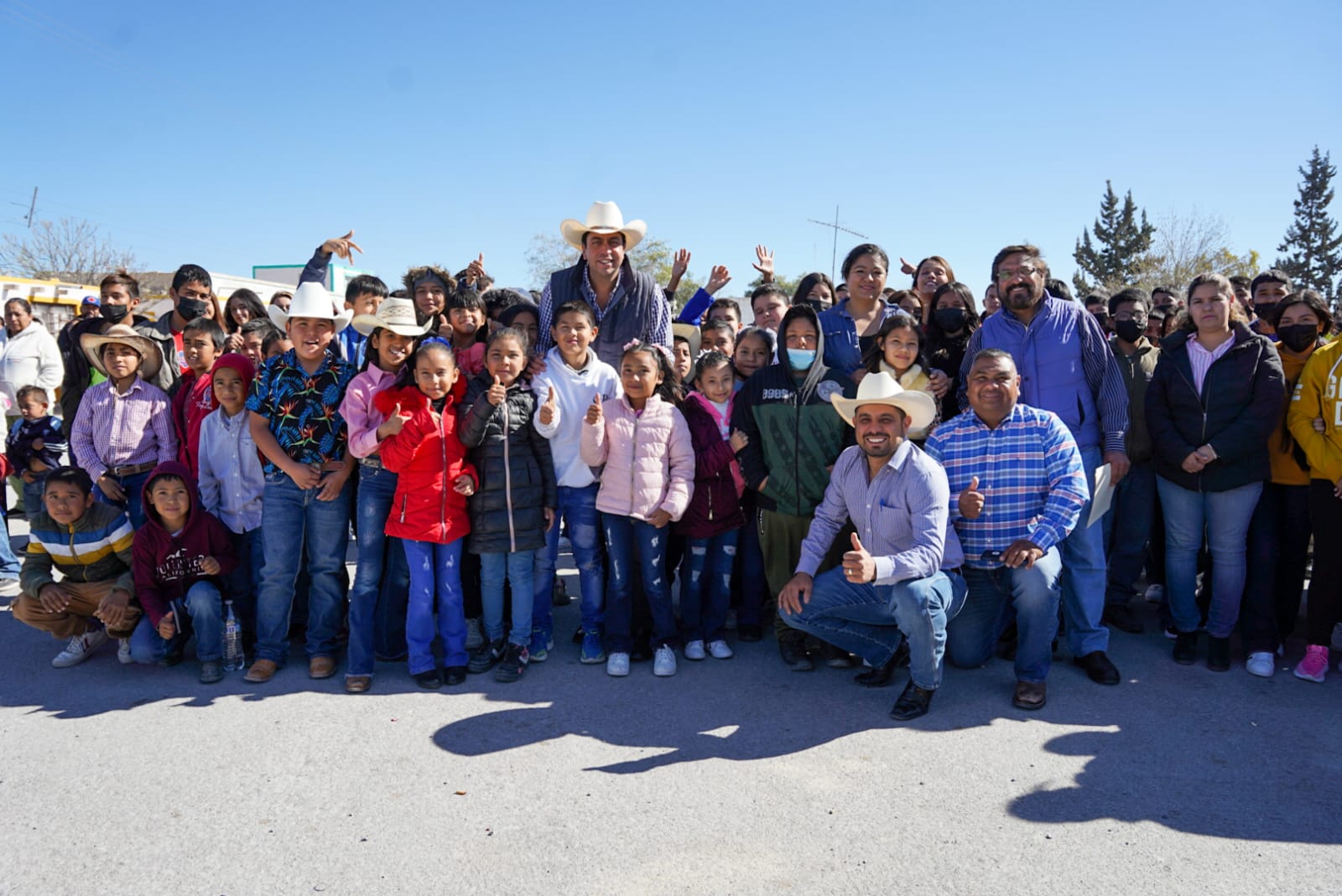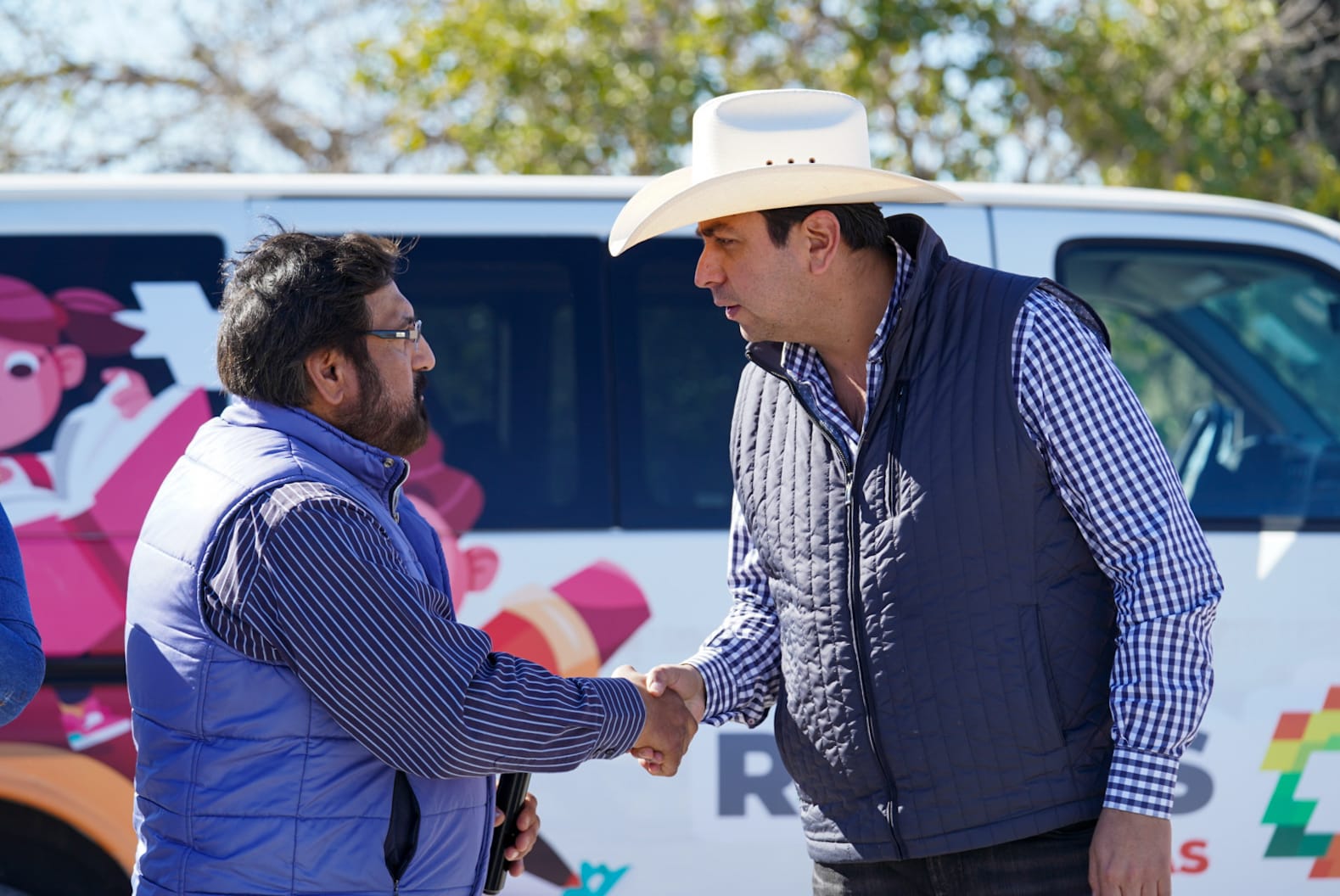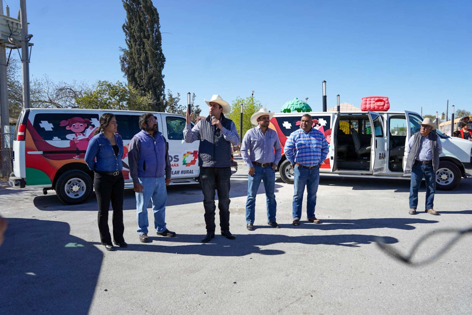 En el ejido Hipólito, el alcalde Chema Morales Padilla entregó tres unidades móviles para el traslado de niños y adolescentes a diversas instituciones educativas ubicadas en la zona rural y en la cabecera municipal de Ramos Arizpe.