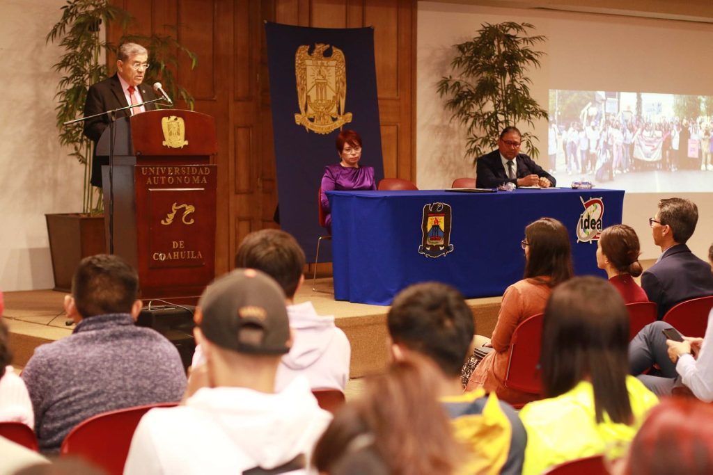 En la Sala de Seminarios “Emilio J. Talamás” de la Unidad Camporredondo se contó con la presencia del rector de la máxima casa de estudios, Salvador Hernández Vélez, el coordinador de la Unidad Saltillo (US), Julio Saucedo Zul, así como directores de las Escuelas y Facultades de la US, comunidad estudiantil, docente y administrativa del plantel.