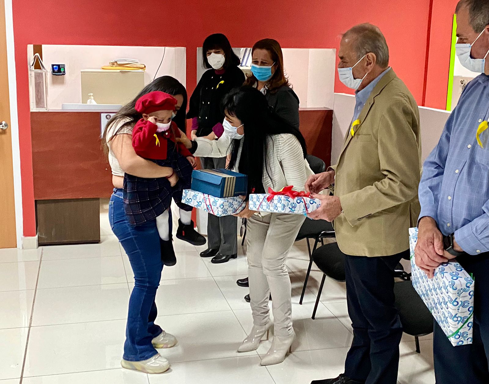 Al término del evento, las autoridades presentes hicieron entrega de obsequios a once niños que padecen cáncer y liberaron globos amarillos a las afueras del hospital, como un símbolo de solidaridad y concientizacion.