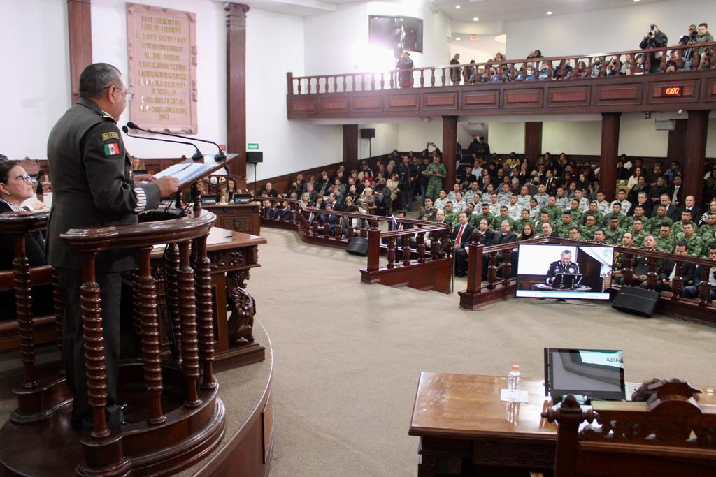 Con la participación de los titulares de los tres poderes del Estado y autoridades militares, el Congreso del Estado de Coahuila llevó a cabo una sesión solemne para conmemorar el “Día del Ejército”, en la cual se reconoció el trabajo de las mujeres y hombres que lo integran, así como la coordinación entre las fuerzas armadas y el estado por mantener la seguridad en Coahuila.