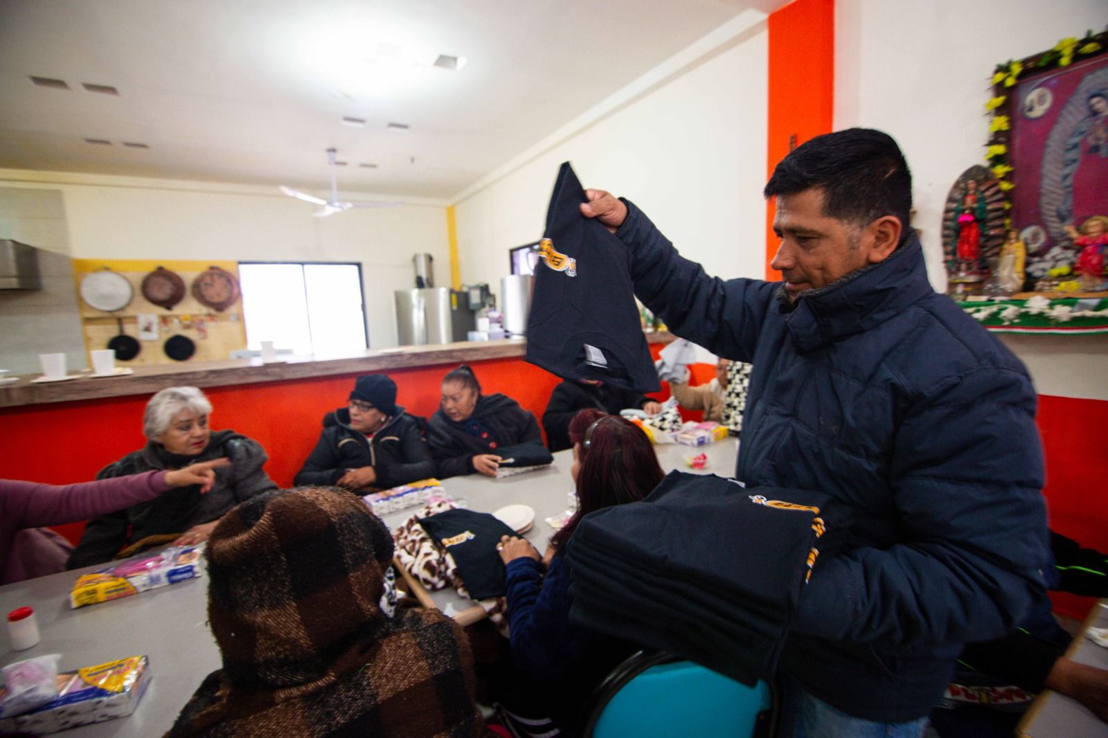 Los 80 adultos mayores que asisten a diario al Comedor Comunitario de la colonia Blanca Esthela fueron beneficiados con la entrega de ropa, y artículos de higiene personal, a través de la Brigada Invernal impulsada por la presidenta honoraria del DIF Ramos Arizpe, Ana Lucia Cavazos Cuéllar.